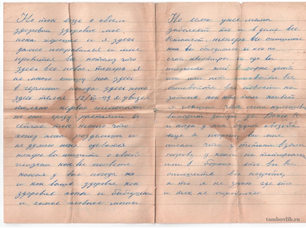 Письмо на Родину с места службы в рядах Красной Армии.