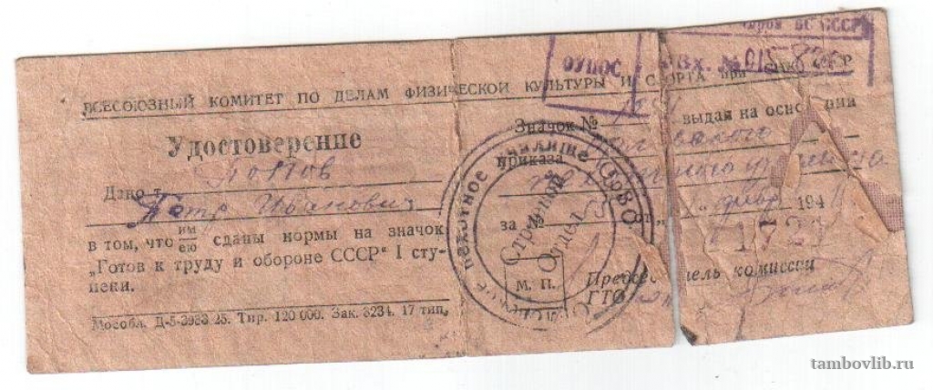 сдачи норм ГТО1941, февраль Межпоселенческая центральная библиотека Пичаевского района Документ