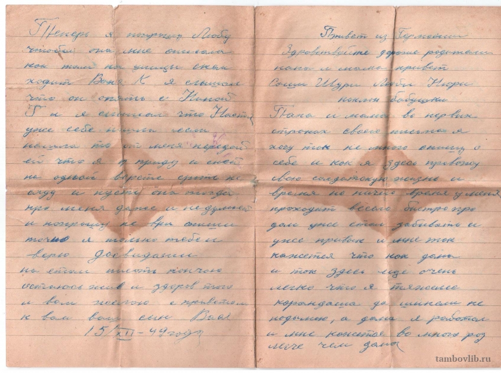 Письмо родным