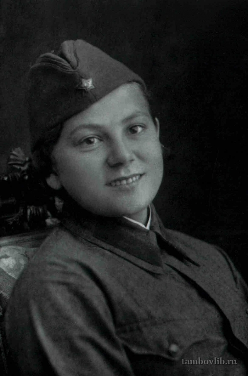Родилась в 1922 г. в г. Тамбове. Закончила медицинское училище (Химфарм школа), до войны работала в аптеке №2 фармацевтом. В 1941 г. была призвана в ряды Красной Армии, но получила отсрочку. С ноября 1943 г. по декабрь 1945 г. служила в звании младшего лейтенанта медицинской службы на Окружном ветскладе №2262 Орловского военного округа г. Воронежа. Была награждена медалью «За Победу над Германией в Великой Отечественной войне 1941-1945 гг.». Умерла в 1984 г. в г. Тамбове.1941, сентябрь ТОУНБ Портрет г. Рассказово