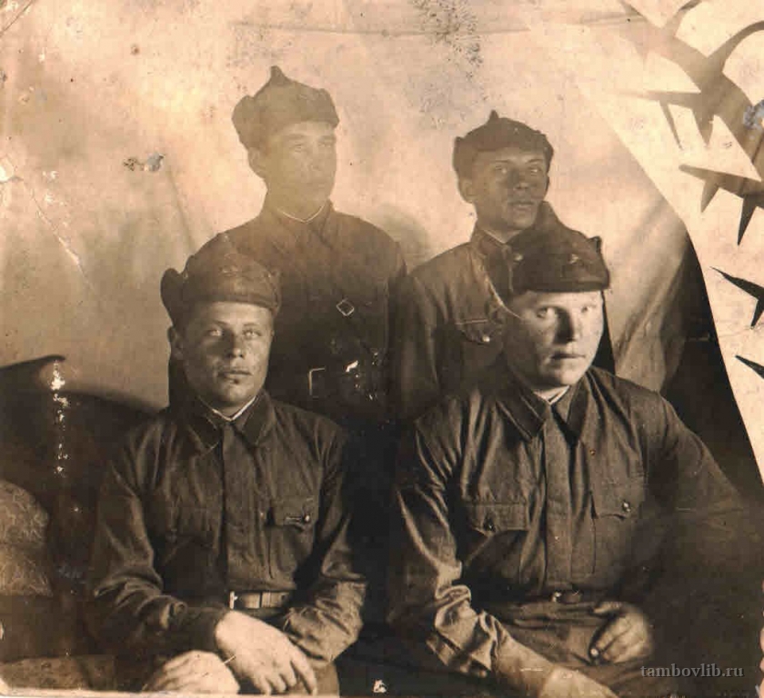 Родился 18 декабря 1917 г. в с. Покрово-Пригородное (с. Щемиловка) Тамбовского района Тамбовской области. Окончив 4 класса пошел учится на бондаря. 17 марта 1939 г. был направлен в Красную Армию. Служба проходила на озере Хасан. В 1941 г. из в/ч 6476 2 роты, в звании ефрейтор-сапер, направлен в 929 ОКСБ, в 1-ую саперную роту. В 1943 г. направлен под г. Могилев в Белоруссии в 657 отдельный саперный батальон. Часто под артиллерийским, автоматным огнем нужно было очищать подходы к реке при форсировании водных преград. В апреле 1945 г. при форсировании р. Одер (был командиром взвода саперного батальона) при выполнении боевой задачи был ранен. Был направлен в госпиталь, находящийся в Германии. Сражался до конца войны и победу встретил в Германии. Демобилизовался в мае 1946 г., вернулся в Тамбов и продолжил службу в органах внутренних дел по 1971 г. Был награжден орденом «Отечественной войны II степени», орденом «Славы II степени», орденом «Славы III степени», орденом «Красной Звезды», медалью «За боевые заслуги», нагрудным знаком «Отличник милиции», юбилейным орденом «Отечественной войны I степени», юбилейными медалями. Умер 9.07.2007 г. На фото сидит слева.Добавлена 27 Апреля 2016