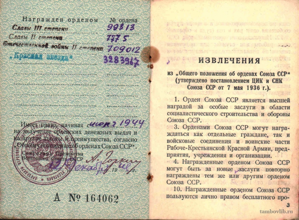Родился 18 декабря 1917 г. в с. Покрово-Пригородное (с. Щемиловка) Тамбовского района Тамбовской области. Окончив 4 класса пошел учится на бондаря. 17 марта 1939 г. был направлен в Красную Армию. Служба проходила на озере Хасан. В 1941 г. из в/ч 6476 2 роты, в звании ефрейтор-сапер, направлен в 929 ОКСБ, в 1-ую саперную роту. В 1943 г. направлен под г. Могилев в Белоруссии в 657 отдельный саперный батальон. Часто под артиллерийским, автоматным огнем нужно было очищать подходы к реке при форсировании водных преград. В апреле 1945 г. при форсировании р. Одер (был командиром взвода саперного батальона) при выполнении боевой задачи был ранен. Был направлен в госпиталь, находящийся в Германии. Сражался до конца войны и победу встретил в Германии. Демобилизовался в мае 1946 г., вернулся в Тамбов и продолжил службу в органах внутренних дел по 1971 г. Был награжден орденом «Отечественной войны II степени», орденом «Славы II степени», орденом «Славы III степени», орденом «Красной Звезды», медалью «За боевые заслуги», нагрудным знаком «Отличник милиции», юбилейным орденом «Отечественной войны I степени», юбилейными медалями. Умер 9.07.2007 г.