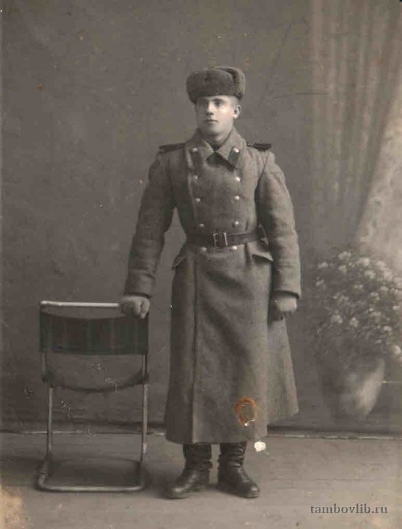 Родился 15 декабря 1926 г. в г. Тамбове. Был призван в ряды Красной Армии в 1943 г. В боях за высоту «Северная» с 11 по 15 августа 1945 г. проявил себя мужественно, уничтожил из личного оружия в траншеи противника двух японских солдат-смертников. Был награжден медалью «За Отвагу», а также юбилейными медалями. Умер 23 марта 1984 г.19 января 1947 ТОУНБ Портрет Корея