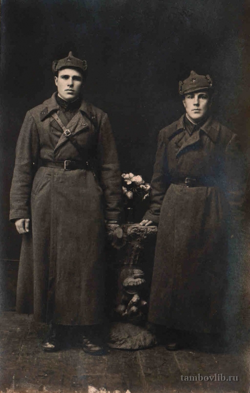 Родился в 1918 г. в д. Шишкино Бондарского района Тамбовской области. До войны работал в Бондарском лесхозе. Был призван в ряды Красной Армии в декабре 1939 г. из с. Тулиновка Тамбовского района. Участник финской войны. Во время Великой Отечественной войны служил в звании старшего сержанта в Литве. Пропал без вести в декабре 1941 г. На фото слева, справа - помощник командира взвода Неумывако, из Запорожья.08 декабря 1940 ТОУНБ Портрет Литва