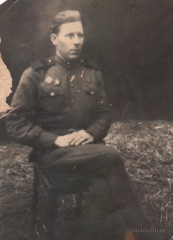 Родился в 1918 году в с. Малая-Моршевка Моршанского района Тамбовской области. Призван в РККА в 1939 году. Участвовал в Великой Отечественной войне с первых до последних дней. Был легко ранен. Служил в 24 пограничном полку войск НКВД 2 Украинского фронта. За подвиг, совершенный 2 февраля 1944 года, награжден Орденом Красной Звезды. Фото из архива племянницы.1945, март Знаменская ЦБС Портрет