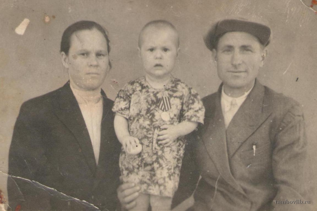 Яшина Анна Ивановна с супругом Петром Ефремовичем и дочерью Валентиной. В годы Великой Отечественной войны Анна Ивановна работала санитаркой в госпитале.1944 Межпоселенческая центральная библиотека Ржаксинского района Семейное Тамбовская область,Ржаксинский