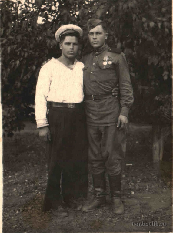 Родился 29 июня 1924 г. в с. Незнановка Тамбовского района Тамбовской области. Призван на действительную военную службу 18 августа 1942 г. Тамбовским райвоенкоматом. С августа 1942 г. по февраль 1943 г. проходил службу курсантом 90 запасного зенитно-артиллерийского полка, который входил в состав 125 отдельной стрелковой бригады. С августа 1942 г. бригада находилась в резерве 33-й Армии. В феврале 1943 г. был зачислен стрелком 97 гвардейского Краснознаменного полка (командир полка полковник А. А. Булахов, заместитель командира полка по политчасти майор Е. Ф. Семенов), входившего в состав 31 гвардейской стрелковой Витебской Краснознаменной орденов Ленина и Суворова дивизии. В феврале 1943 г. дивизия в составе 16-й Армии Западного фронта наступает на орловском направлении. В ходе контрнаступления советских войск в Курской битве дивизия действовала в составе 11-й гвардейской армии Западного, с 1 августа – Брянского фронтов, участвует в освобождении г. Карачев (15.08.1943). Командир (февраль 1943-июль 1944): полковник, с 17.11.1943 – генерал-майор И.К. Щербина. 3 марта 1943 г. получил ранение. В ноябре 1943 г. зачислен плотником-мостовиком 104-го восстановительного железнодорожного батальона, который входил в состав 45-й железнодорожной ордена Богдана Хмельницкого бригады (командир- полковник А. И. Наталевич). 28 декабря 1944 г. за самоотверженную работу по восстановлению и эксплуатации прифронтовых железных дорог награжден Почетной грамотой ЦК ВЛКСМ. Приказом №6682 от 16 ноября 1946 г. Министром путей сообщения СССР за образцовое выполнение боевых заданий командования на фронте борьбы с немецкими захватчиками в период Великой Отечественной войны Советского Союза 1941-1945 годов объявлена благодарность. Награжден медалями «За боевые заслуги», «За Победу над Германией Великой Отечественной войне 1941-1945 гг.», юбилейным орденом «Отечественной войны I степени» и юбилейными медалями. Победу встретил в Германии. Велись восстановительные работы в Дрездене. С декабря 1946 г. проходил службу в 9 отдельном железнодорожном батальоне командиром отделения мостовиков-монтажников. Уволен в запас 17 апреля 1950 г. На фото справа, слева брат Иван.1946 ТОУНБ Портрет г. Никополь