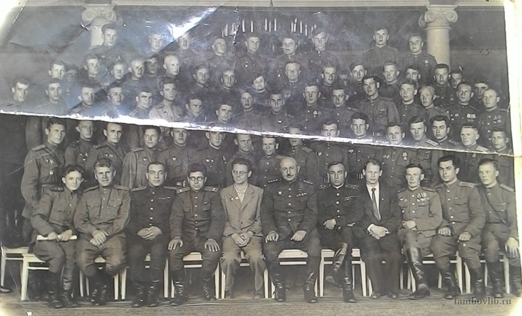 Родился в 1917 г. в совхозе ОГПУ Абдулинского района Чкаловской (Оренбургской) области. До войны работал в совхозе секретарем политотдела. 1 июня 1941 г. был призван в ряды Красной Армии. Ушел на фронт рядовым, вернулся с фронта Гвардии майором. Воевал на Сталинградском, Прибалтийском фронтах. Служил в политотделе. В мае 1946 г. демобилизован из рядов РККА и принят на работу секретарем парторганизации. С 1956 г. проживал в Тамбовской области. Был награжден орденом «Красной звезды», орденом «Отечественной войны II степени», медалями «За боевые заслуги», «За Победу над Германией в Великой Отечественной войне 1941-1945 гг.». Умер в 1968 г. На фото третий ряд снизу восьмой справа.Добавлена 12 Июля 2016