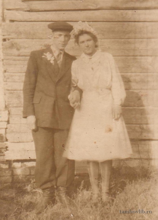 Графские, Екатерина Филипповна и Александр Васильевич, в день своей свадьбы, 18 октября 1947 года.