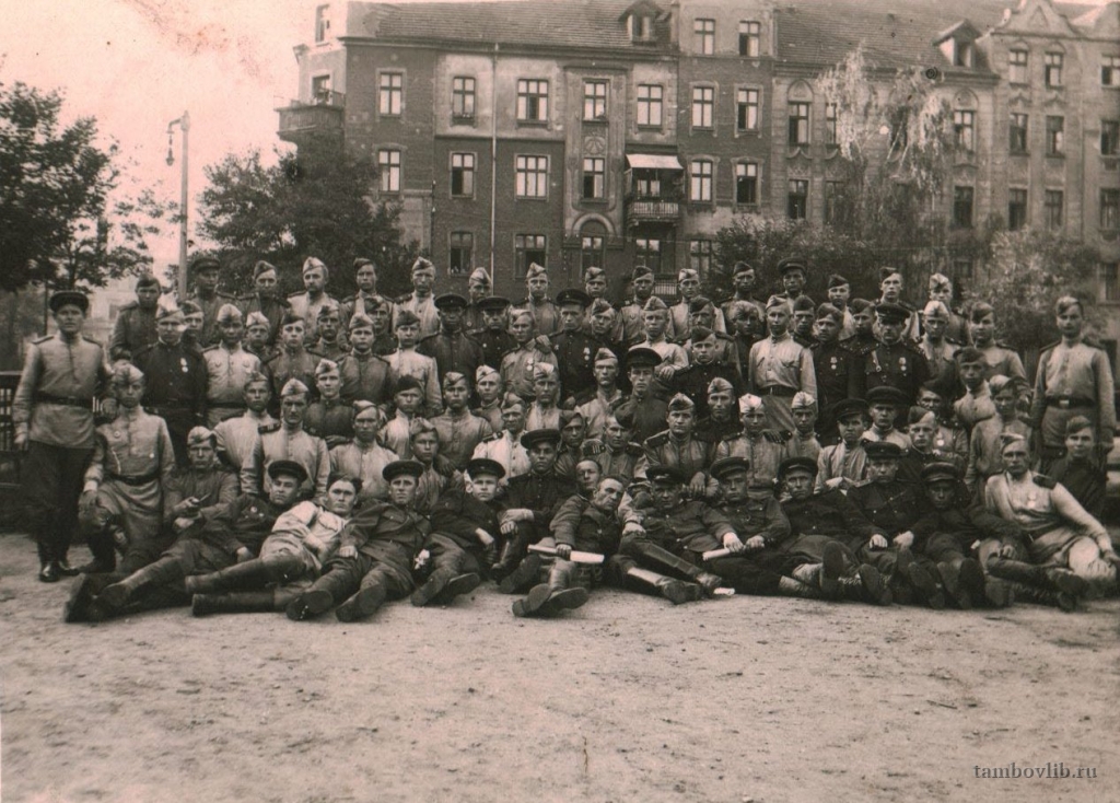 Родился в 1924 г. в с. Горелое Тамбовского района Тамбовской области. В 1943 г. был призван на фронт по специальности наводчика в зенитно-пулеметный батальон. С апреля 1944 г. по май 1945 г. служил в 56 отдельном зенитном артиллерийском полку – помощником наводчика, звание ефрейтор. С мая 1945 г. по 1947 г. служил в 3 отдельном батальоне охраны. Награжден орденом «Отечественной войны II степени», медалью «За Победу над Германией в ВОВ 1941-1945 гг.». Умер в 1996 г. На фото 3 ряд 1 слева.1945, октябрь ТОУНБ Портрет Германия
