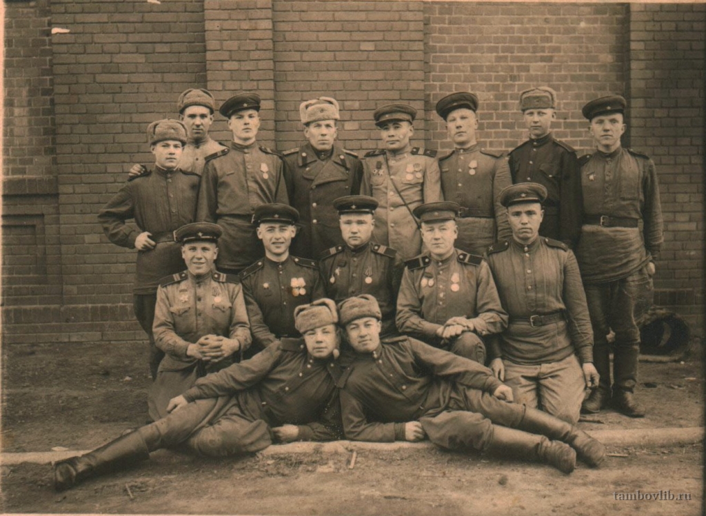 Родился в 1924 г. в с. Горелое Тамбовского района Тамбовской области. В 1943 г. был призван на фронт по специальности наводчика в зенитно-пулеметный батальон. С апреля 1944 г. по май 1945 г. служил в 56 отдельном зенитном артиллерийском полку – помощником наводчика, звание ефрейтор. С мая 1945 г. по 1947 г. служил в 3 отдельном батальоне охраны. Награжден орденом «Отечественной войны II степени», медалью «За Победу над Германией в ВОВ 1941-1945 гг.». Умер в 1996 г. На фото 3 ряд крайний слева.20 марта 1946 ТОУНБ Портрет г. Легниц, Польша
