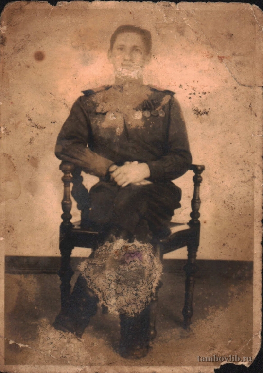 Уроженец с. М. Кулики Моршанского района Тамбовской области (1926-1988), прошел войну (5 лет оставался в Германии) - служил в звании гвардии сержанта, награжден орденом «Отечественной войны II степени», медалью «За боевые заслуги», «За победу над Германией», «За взятие Берлина» (номер расчета Моторизованного батальона автоматчиков). Фотография из архива Деевой Светланы Александровны.18 марта 1949 ТОУНБ Портрет Германия