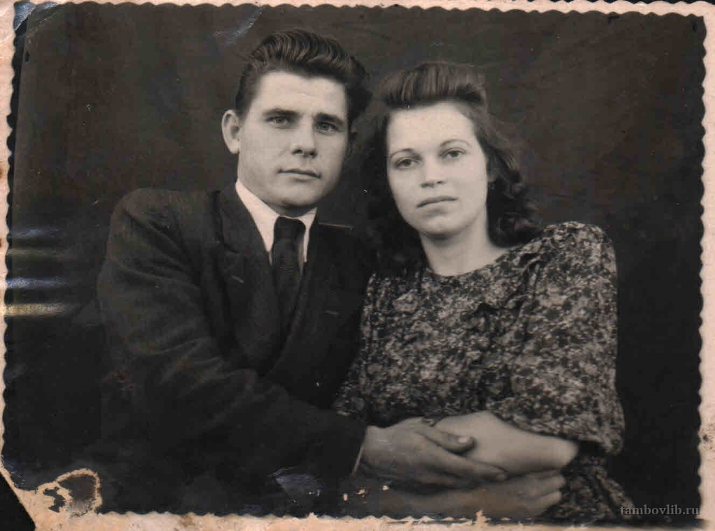 Родился в 1924 г. в с. Каменка Ржаксинского района Тамбовской области. Военную службу проходил в звании сержанта командира пулеметчиков в 437 строевом полку 154 строевой дивизии I Прибалтийского фронта с сентября 1943 г. по июнь 1944 г. В наступательных боях под г. Полоцком 27.06.1944 г. тяжело ранен осколком в правую ногу. Из армии уволен в марте 1945 г. Награжден орденом «Красной Звезды», орденом «Отечественной войны», медалями «За отвагу», «За Победу». С 1960 г. работал директором кирпичного завода. За успешное выполнение заданий 9-ой пятилетки и достигнутые высокие показатели в работе Президиумом Верховного Совета СССР награжден орденом «Трудового Красного Знамени». Умер 22.10.2004 г. На фото с женой.Добавлена 18 Апреля 2018