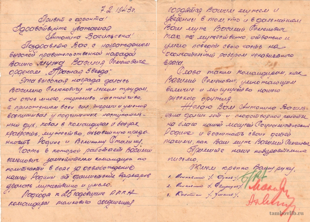 07 февраля 1943 ЦБС города Мичуринска Письмо