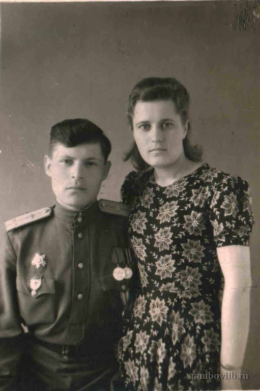 Савельева (Мельниченко) Мария Дмитриевна Родилась 30 сентября 1924 года в г. Малин Житомирской области (Украина). Закончила 9 классов, началась Великая Отечественная война. С 3 мая 1944 года, после освобождения города от немецко-фашистских захватчиков, добровольно пошла служить в ряды Красной Армии. 31 июля 1944 года окончила курсы младших командиров при ВАД №37 на «отлично» и ей присвоили воинское звание «сержант». С 7 июля 1944 года находилась в действующей армии, в составе 37-й ВАД 1 и 4 Украинских фронтов, в должности начальника постаДКУ-186 ВАД № 37. В октябре 1944 г. награждена нагрудным знаком «Отличный дорожник». Член ВЛКСМ с июля 1944 г. Непосредственно принимала участие в освобождении Западной Украины, Карпат, Польши и Германии. Выполняла специальное задание по сопровождению президента Чехославакии - Эдварда Бенеша - на Ялтинскую конференцию. Была избрана секретарем комсомольской организации. В апреле 1945 года за образцовое выполнение заданий командования награждена медалью «За боевые заслуги». В августе 1945 года в звании старшего сержанта уволена в запас Красной Армии. Награждена медалью «За победу над Германией в Великой Отечественной Войне». Во время учебы на курсах младших командиров при 37-ВАД, познакомилась с сержантом Савельевым А. М. и после войны, по его возвращению в 1947 году, они поженились. После свадьбы начались постоянные переезды к новому месту службы мужа, лейтенанта Савельева А. М., Украина, Вильнюс, Красноярский край, Ленинград, Кировская область. В 1977 году вместе с мужем, уже полковником в отставке Савельевым А. М., приехала в г. Тамбов. После Великой Отечественной Войны награждена орденом «Отечественная война» II степени, нагрудным знаком «25 лет победы в Великой Отечественной Войне», «Фронтовик» и 14 различными медалями и почетными грамотами. С 1977 по 1985 годы работала в адресном бюро УВД Тамбовской области. Умерла 17 августа 2018 года, похоронена на Полынковском кладбище г. Тамбова.1947 ТОУНБ Семейное г. Малин (Украина)
