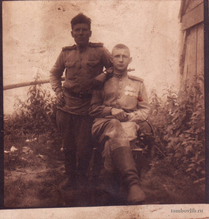 Родился 20 февраля 1924 года в селе Ольшанка Уваровского района Тамбовской области. Призван в ряды РККА в 1942 г. Уваровским РВК. Старший минометный мастер артиллерийской мастерской 220 минометного полка 14 минометной бригады 16 артиллерийской дивизии, сержант. Воевал на Северо-Западном, Брянском, Степном, Украинском фронтах. Освобождал г.Белгород, Украину, Молдавию, Румынию, Венгрию, Чехословакию. Награждён двумя медалями «За отвагу», медалью «За боевые заслуги». После ВОВ жил и работал в селе Ольшанка Уваровского района. Умер 24 августа 1998 года. На фото сидит.Добавлена 6 Марта 2020