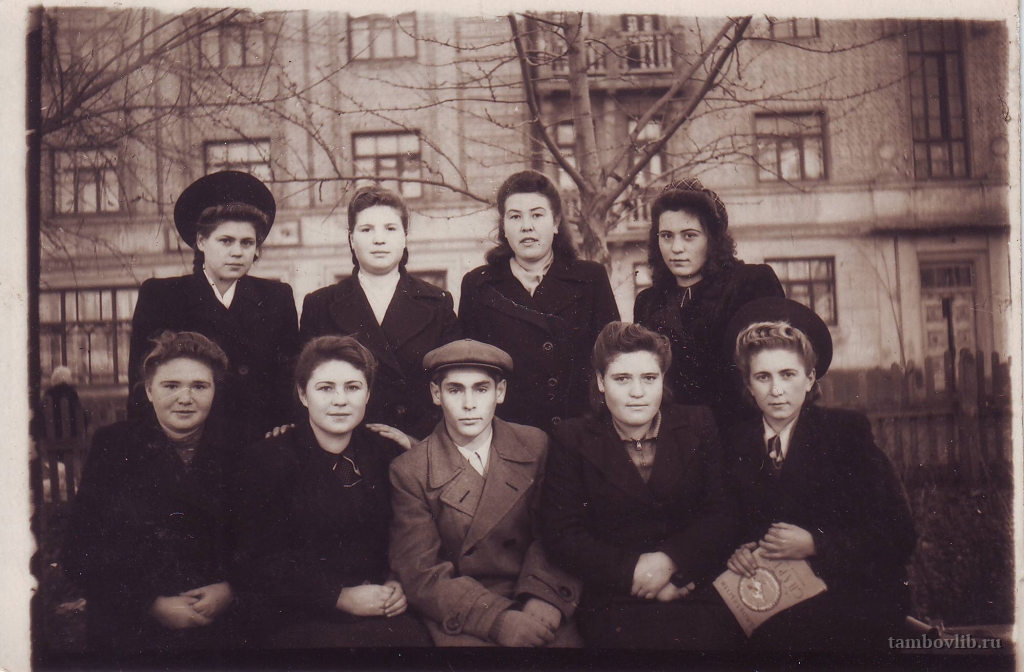 Студенты Тамбовского учительского института. Припайчева (Улимова) Надежда Петровна (первый ряд, вторая слева).