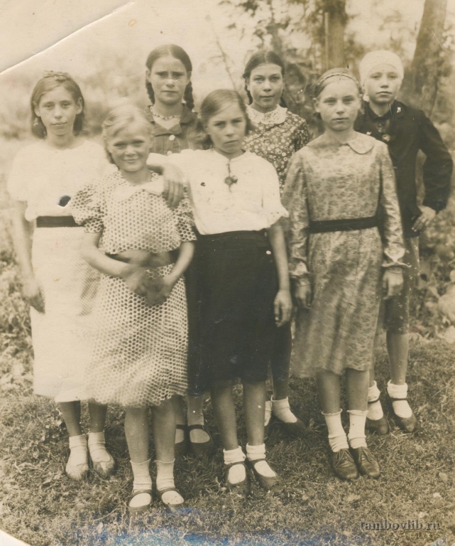 На фото запечатлены дети войны Евгения с подругами, октябрь 1943 года.1943, октябрь Межпоселенческая центральная библиотека Никифоровского района Семейное с. Ярославка Никифоровского района