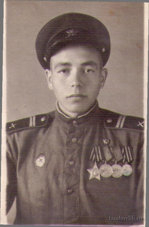 Призван в 1943 году, направлен для прохождения службы в отдельный полк, который дислоцировался в г. Вольске Саратовской области. Был командиром минометного расчета. Вернулся в 1950 году.1948 Межпоселенческая центральная библиотека Пичаевского района Портрет