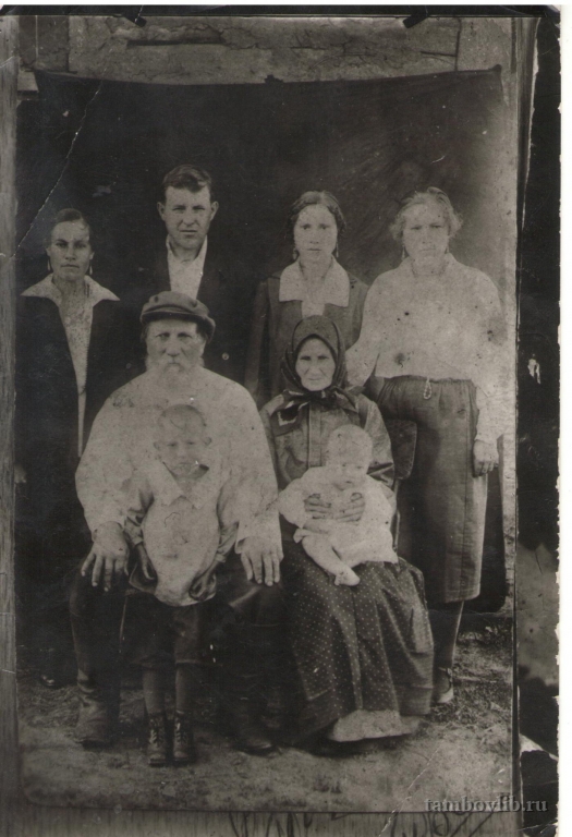 Семья Федюниных, Мучкапский район, п. Урицкое, Тамбовской области. На фото в верхнем ряду стоит Федюнин Михаил Игнатьевич -участник Великой Отечественной войны. Фото из семейного архива внучки Кулагиной Елены Ивановны.1933 Центральная библиотека Мучкапского района Семейное