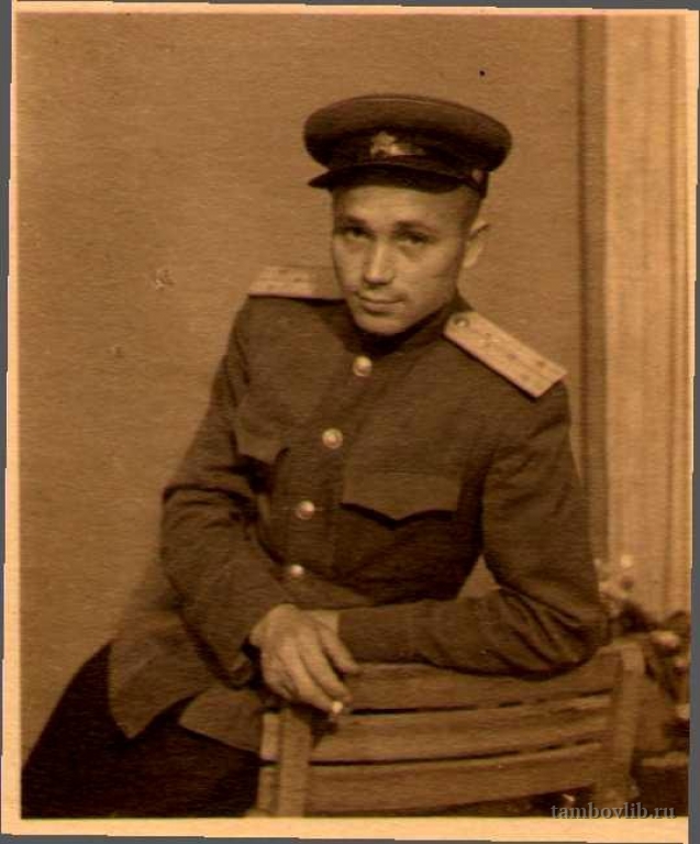 Гвардии старший лейтенант Абрамов Дмитрий Иванович родился в 1916 году в Первомайском районе. До войны работал учителем математики. 12 июля 1941 года был призван в армию.Воевал в составе 49-го гвардейского минометного полка. Прослужил до окончания Великой Отечественной войны. Д.И. Абрамов воевал на Донбассе, на Кавказе, в Крыму, в Прибалтике, принимал участие в освобождении Польши и взятия Берлина. Его боевой путь отмечен правительственными наградами:боевыми орденами Красной звезды и Отечественной войны 2-й степени, медалями "За боевые заслуги" и "За оборону Кавказа". День Победы встретил под Берлином. После войны лейтенант Д.И. Абрамов еще два года служил в Германии. После демобилизации переехал с семьей в Инжавинский район. Работал в Чернавской средней школе директором, а затем трудился в Карай-Салтыковской средней школе.1945 Межпоселенческая центральная библиотека Инжавинского района Портрет
