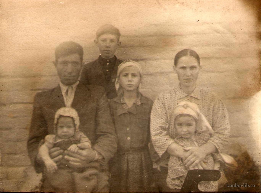 Участник Великой Отечественной войны Зарецкий Федор Иванович с женой и детьми. После войны проживал в с. Кулевча Инжавинского района.Межпоселенческая центральная библиотека Инжавинского района Семейное