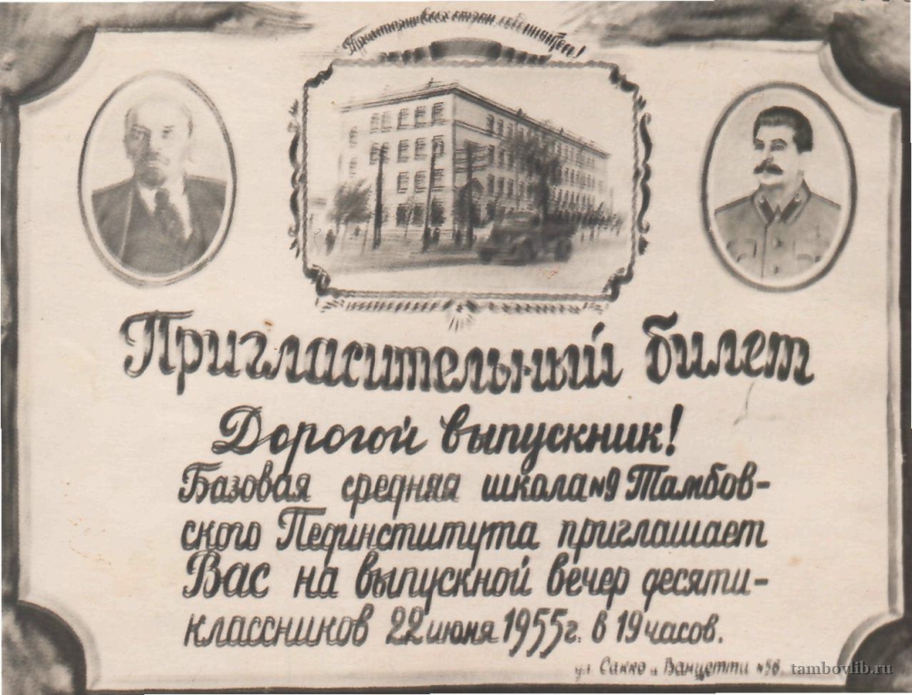 Хранится в личном архиве выпускницы 1955 года школы №9 г.Тамбова Антоновой (Полковниковой) Альбины Алексеевны.22 июня 1955 Знаменская ЦБС Документ Россия, Тамбовская область, Тамбов
