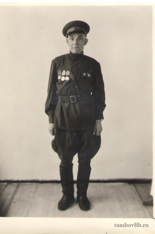 Скачков Я.И. род. 1906, с. Новиково. Призван в армию в 1941, демобилизован в 1945. Старший сержант. Фотография предоставлена библиотекарем Диль Еленой Ивановной1952 Межпоселенческая библиотека Староюрьевского района Портрет