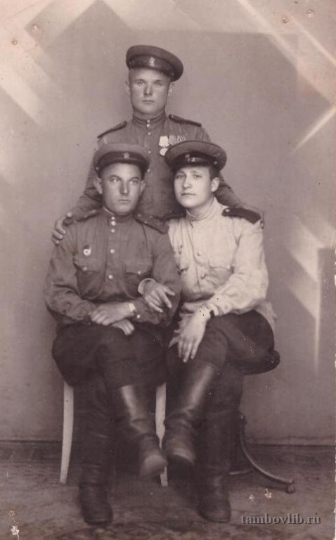 Фронтовые друзья. "На долгую доброю память другу Васи! От друга Петрушке Саше!"1945, сентябрь Районная библиотека Кирсановского района Портрет Курильские острова. Город Северный Курильск