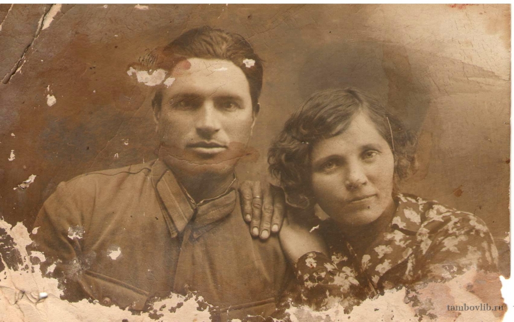 Супруги Саблины Иван Федорович и Александра Григорьевна. Фотография из личного архива жительницы р. п. Инжавино Малиной Марии Ивановны. На фотографии ее родители.1938 Межпоселенческая центральная библиотека Инжавинского района Портрет Инжавино, Тамбовская область, Россия