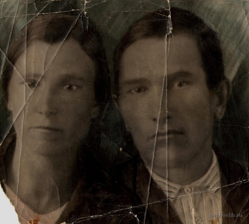 Последняя совместная фотография Марии Михайловны (1908 г. р.) и Константина Яковлевича (1906 г. р.) Поляковых - жителей села Караваино Инжавинского района. Сфотографировались перед отправкой мужа на фронт. Рядовой Поляков К. Я. погиб в бою 14 марта 1943 г.1941, июль Межпоселенческая центральная библиотека Инжавинского района Семейное Кирсанов, Тамбовская область, Россия