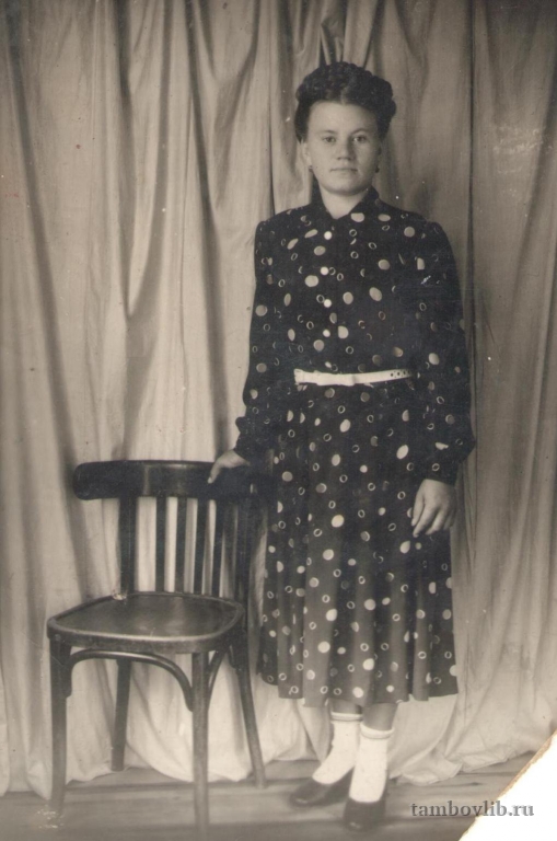 Удалова Елена Петровна, 1931 г. рождения. Труженица тыла, работала в совхозе "Первомайский" Ржаксинского района.1955 Межпоселенческая центральная библиотека Ржаксинского района Портрет