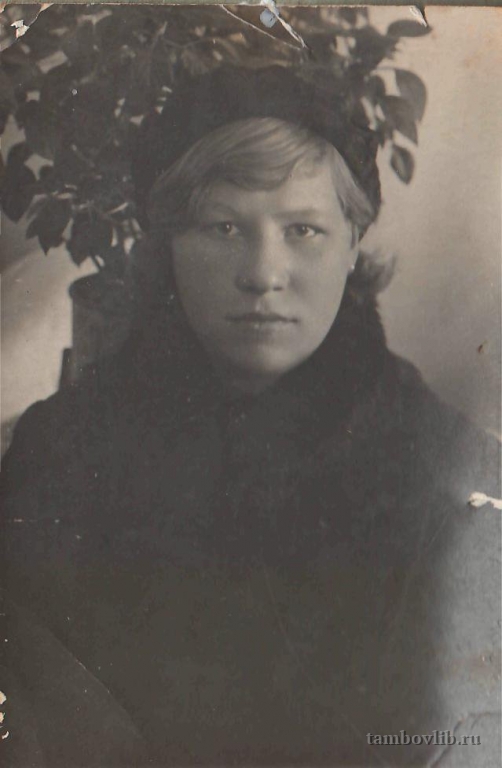 Минаева (Козодаева) Александра Тимофеевна (1924-2014) родилась в селе Понзари Сампурского района Тамбовской области. Жила и работала в р.п. Знаменка. Труженица тыла. Работала агрономом, после войны некоторое время была председателем колхоза им. Калинина. Фотография сделана во время учебы в Чакинском сельскохозяйственной техникуме. Из семейного архива сына.11 июля 1938 Знаменская ЦБС Портрет