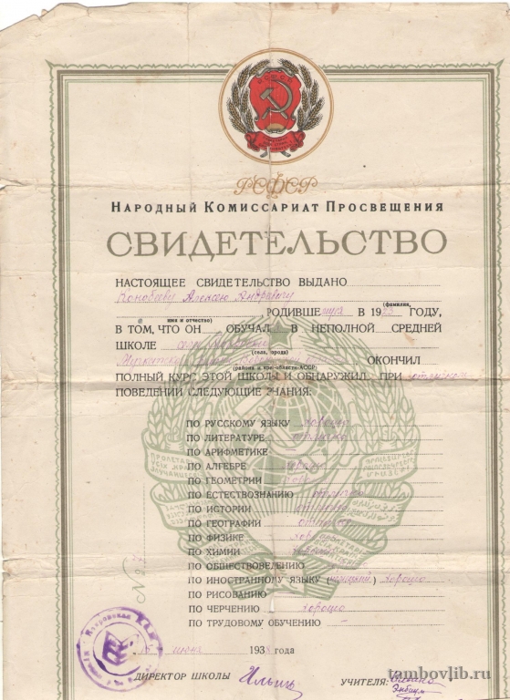 Документ из семейного архива Конобеевой Марии Васильевны.