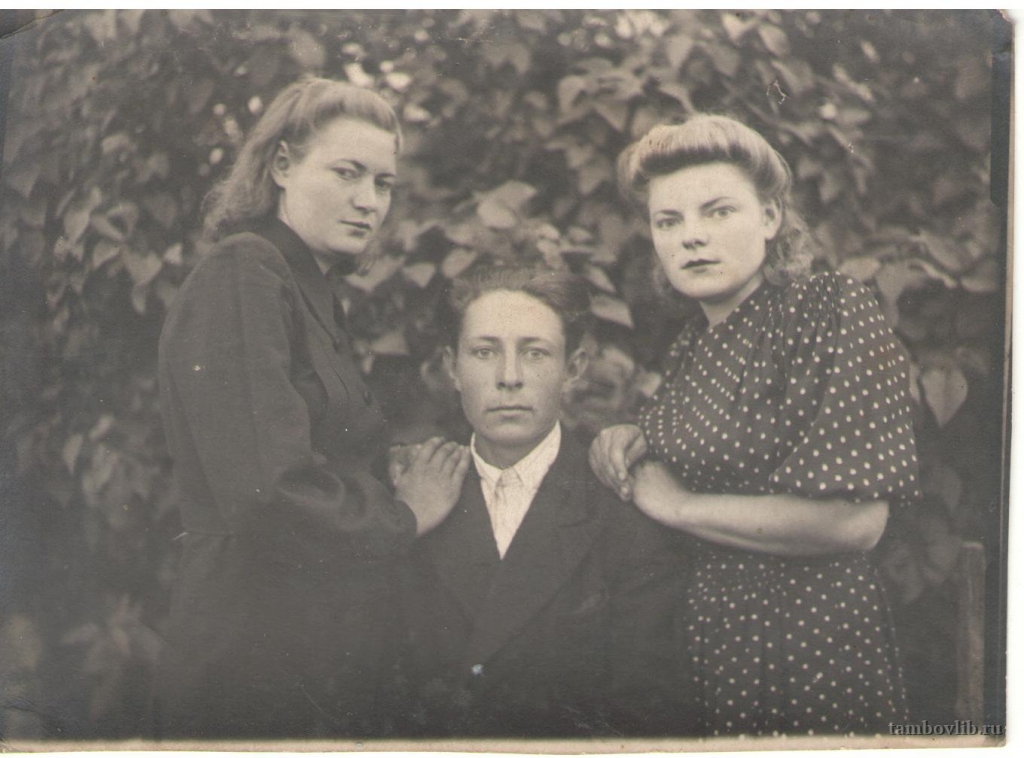 На фото Щукина Мария Ивановна (слева) -участница Великой Отечественной войны, Щукин Николай Иванович, Щукина Надежда Ивановна. Фото из семейного архива Конобеевой Марии Васильевны.1950 Центральная библиотека Мучкапского района Семейное с. Покровка