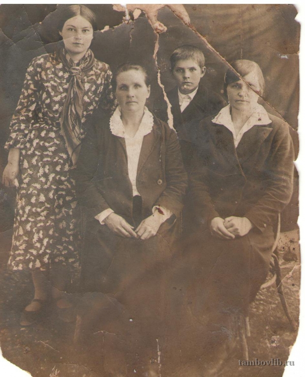 Село Сергиевка. Шепелева Александра Ивановна ( сидит слева). Сын Шепелев Алексей Иванович1938 Центральная библиотека Мучкапского района Семейное