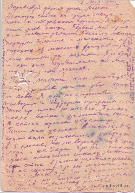 1944, май Межпоселенческая центральная библиотека Пичаевского района Письмо