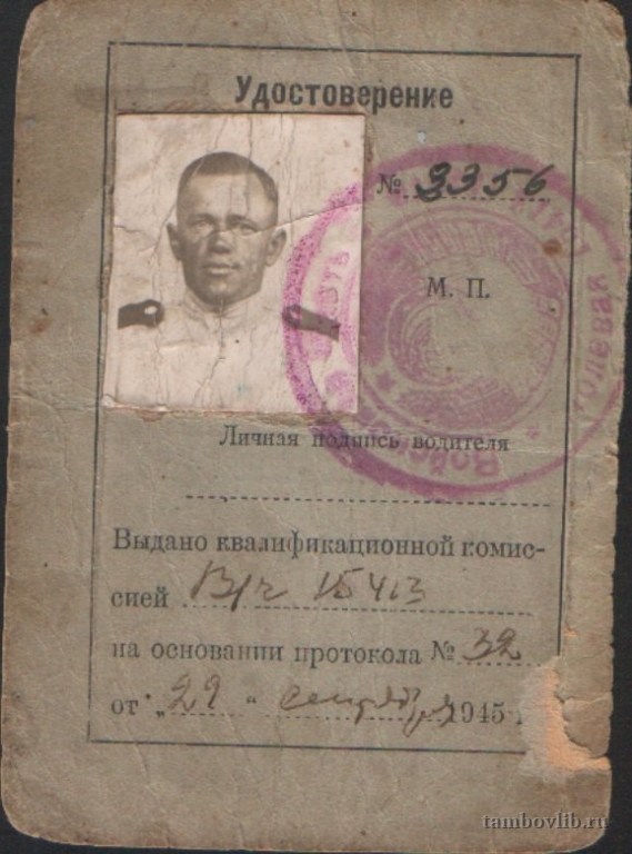 Родился в 1913 г. в Копыльском с/совете Воронежской губернии. Воевал на 2-м Украинском фронте.Межпоселенческая центральная библиотека Жердевского района Документ