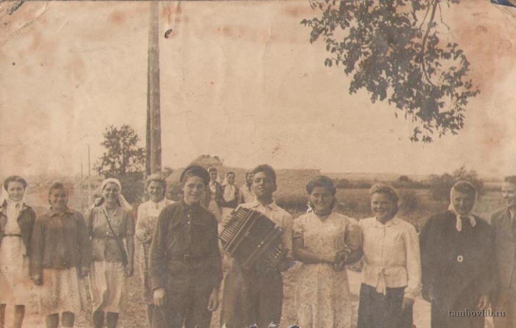 В центре (с гармошкой) Рощупкин Иван Андреевич – участник войны.1941 Межпоселенческая централизованная библиотека Петровского района В тылу