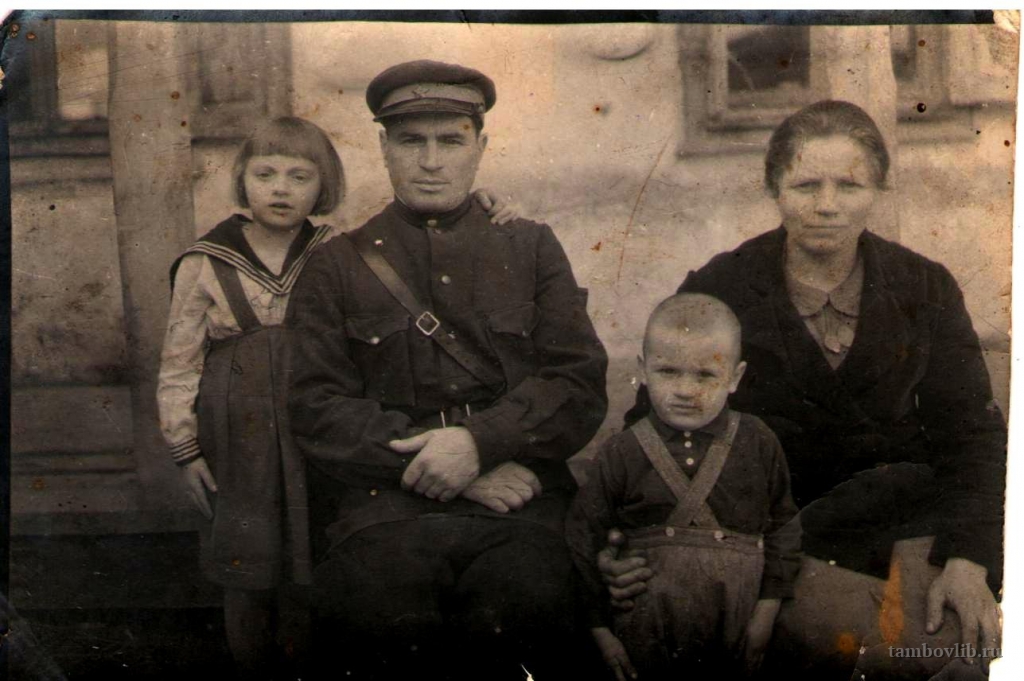 Саблин Иван Федорович с женой Александрой Григорьевной, с дочерью Машей и сыном Славой. Во время войны И. Ф. Саблин служил в милиции. Фотография из семейного архива жительницы р. п. Инжавино Малиной Марии Ивановны. На снимке ее семья.1943 Межпоселенческая центральная библиотека Инжавинского района Семейное Валуйки, Белгородская область, Россия