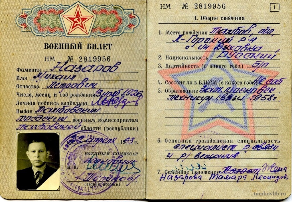 Военный билет Назарова Михаила Петровича