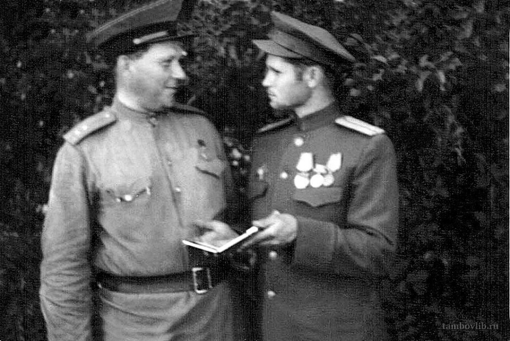 Родился 20 апреля 1915 г. в с. Сухотинка Знаменского района Тамбовской области. Служил сапером, занимался подготовкой собак для подрыва танков. Ушел рядовым, вернулся с войны старшим лейтенантом. На фото справа.