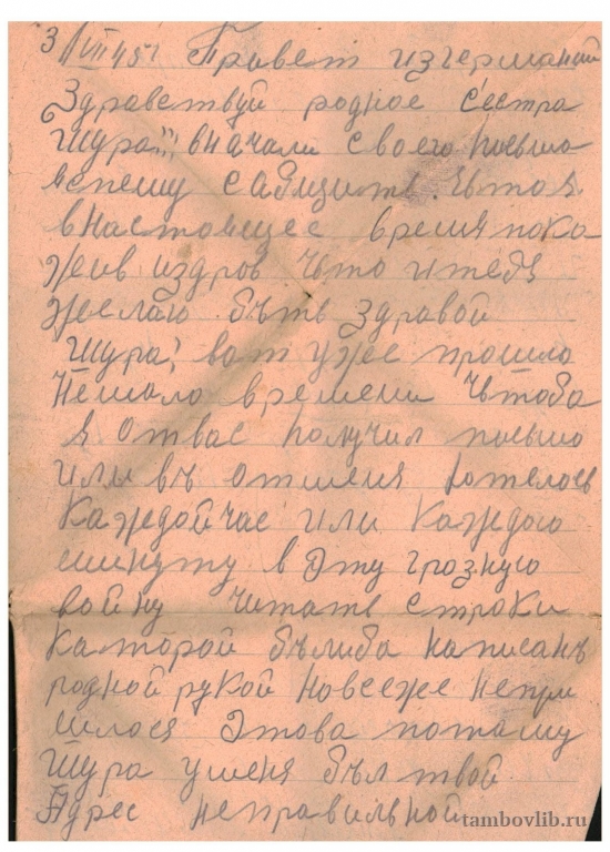 Письмо Полякова Федора Кузьмича своей родной сестре