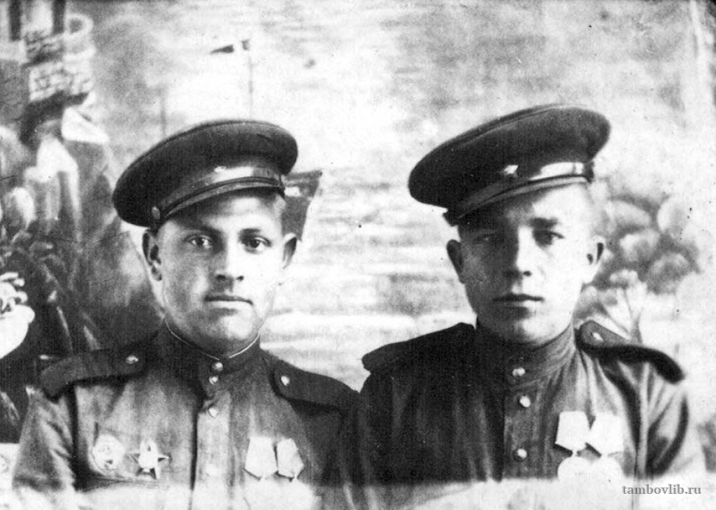 Сержант, артиллерист, уроженец д. Нару-Тамбов Знаменского района Тамбовской области. На фото слева.