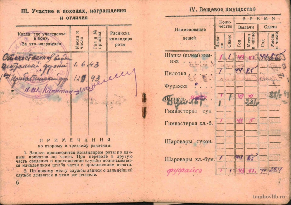 Родился 22 мая 1923 г. в с. П-Пригородное Тамбовского района Тамбовской области. Красноармеец. Проходил службу в составе 4 уд. Армии 891 артиллерийского полка. Принимал участие в боях Центрального фронта, 1-го Прибалтийского фронта. В августе 1944 г. был ранен. Уволен по ранению. Награждён орденом «Красной звезды», орденом «Отечественной Войны 1 степени», медалью «За победу над Германией в ВОВ 1941-1945 гг.», медалью «Жукова», знаком «Фронтовик 1941-1945 гг.». Умер 27.10.2012 г. На фото Красноармейская книжка.Добавлена 21 Марта 2015