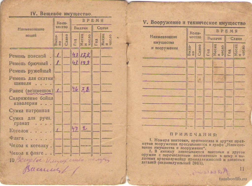 Красноармейская книжка Васильева Николая Ивановича, 1924 года рождения. Выдана 10 марта 1947 годаМежпоселенческая библиотека Рассказовского района Документ