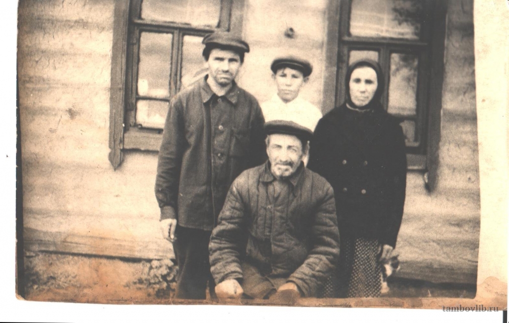 Мыскин Павел Захарович (сидит). Фото сделано в с.Осино-Гай возле дома.1950 год