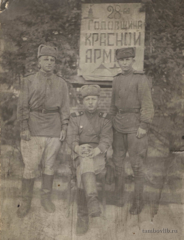 Клейменов Иван Тихонович (на фото слева) родился 14 июня 1919 года, с. Бычки Бондарского района, участник Великой Отечественной войны. Призван в армию в 1940 г. Рядовой. Служил в Литве, Польше, Белоруссии, был в плену, демобилизован в 1946 году. В послевоенные годы жил в селе Городище Бондарского района, работал в колхозе. Умер в 1995 году. Фото из семейного архива племянницы Романовой Татьяны Васильевны.15 апреля 1946 Бондарская межпоселенческая библиотека Портрет