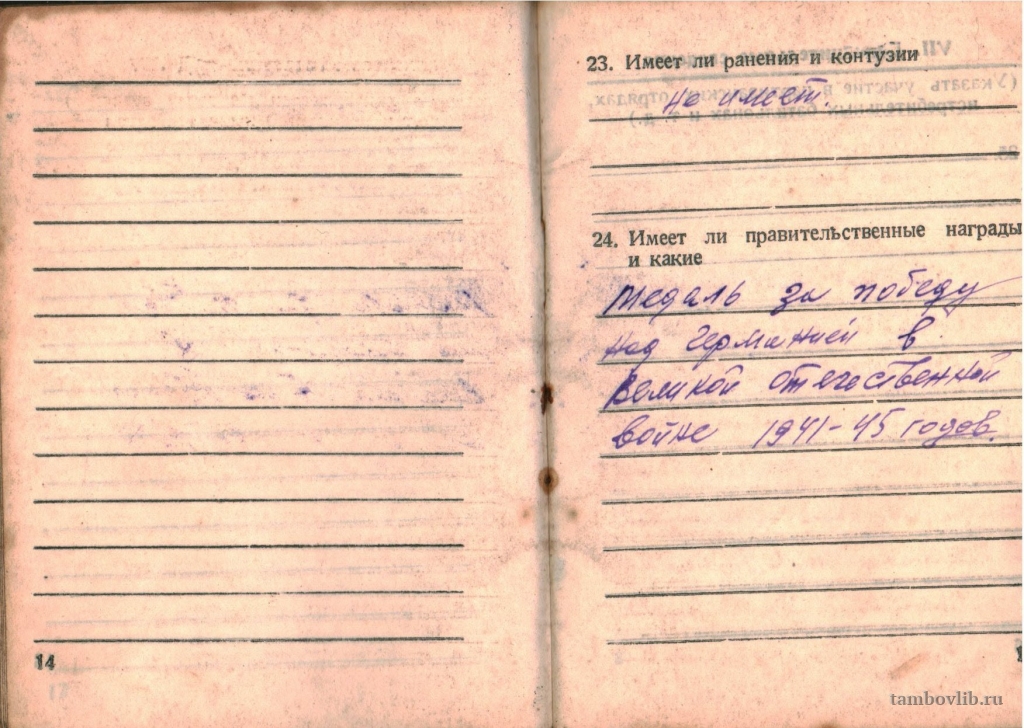 Родился в 1911 г. в с. Туголуково Жердевского района Тамбовской области. Был призван в армию Мордовским РВК Тамбовской области в 1933 г. в переменный состав. С июля 1941 по август 1946 г. проходил службу шофером при 2042 складе ВМС. Демобилизован 23 декабря 1947 г. Награждён медалью «За победу над Германией в Великой Отечественной войне 1941-1945 гг.». На фото военный билет.
