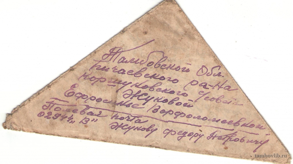 Письмо Жукова Федора Петровича жене Жуковой Ефросинье Варфоломеевне. Из семейного архива жительницы с. Дуплято-Маслово Знаменского района Казанковой Татьяны Александровны.